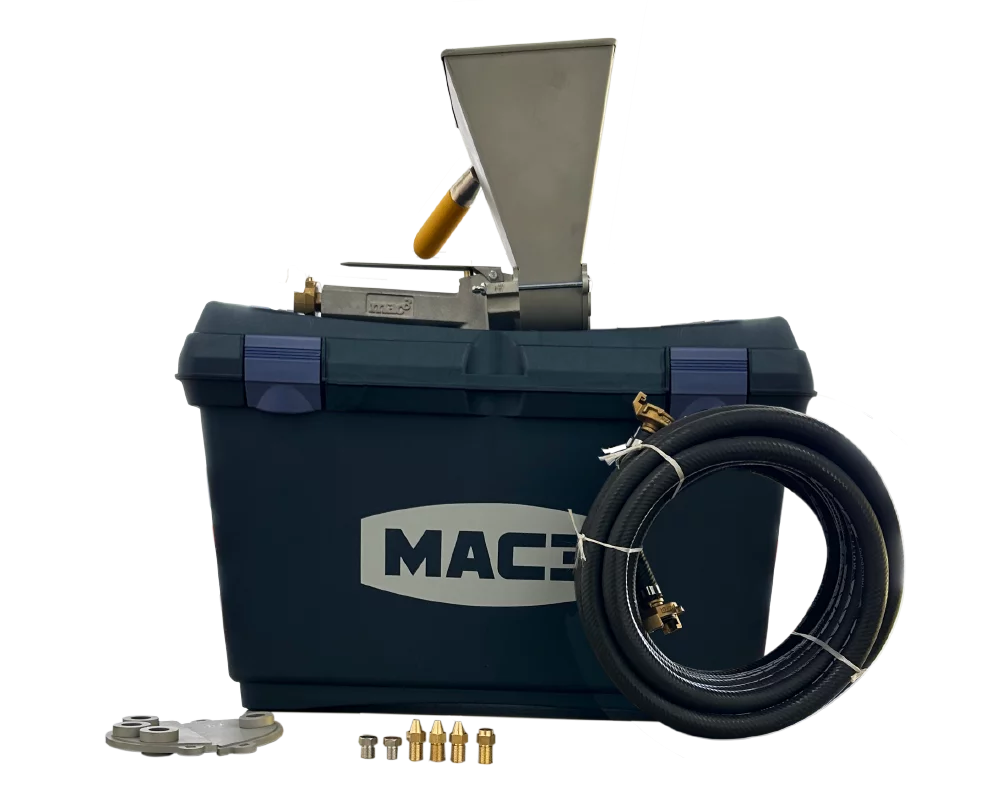 The MAC3 roughcasting tool provides a reliable material projection solution, efficiently applying compounds to both vertical and horizontal surfaces with the power of compressed air.