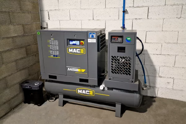 Introducing the MSB range of industrial compressors, engineered to provide reliable compressed air solutions from 2.2 to 15 kW. These versatile units offer multiple mounting options: on a robust chassis, integrated onto a tank, or as a comprehensive compact system that includes the compressor, tank, and dryer for a complete solution.